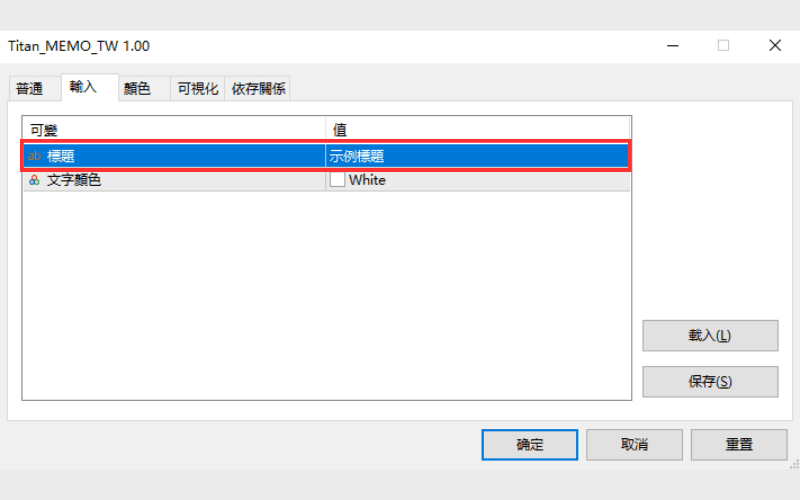 | 标题 | 设置备忘录的标题。使用相同的名称,可以在其他图表中显示该标题。 | SampleTitle |