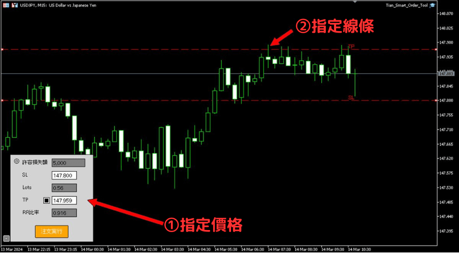 要以价格指定时,在「TP」右侧输入想指定的价格。