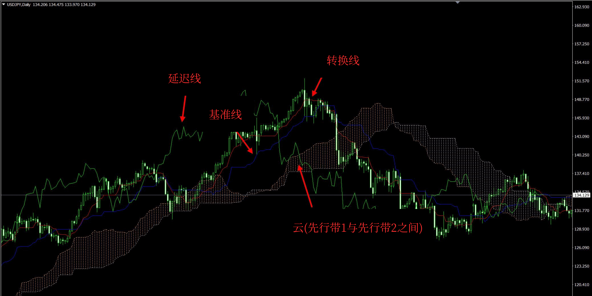 | Senkou Span A; Senkou Span B右侧 | 3 | 先行带B的颜色、粗细度、种类 |