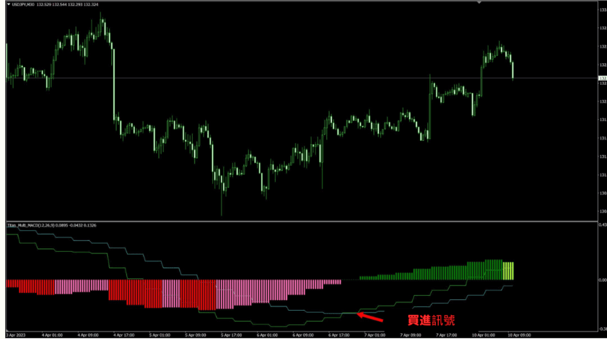 【30分钟图表显示4小时MACD的范例】