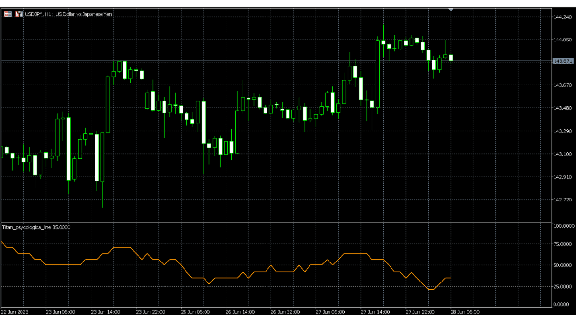 心理线是在子图表上,显示指定的最近期K线上涨多少%的简易指标。