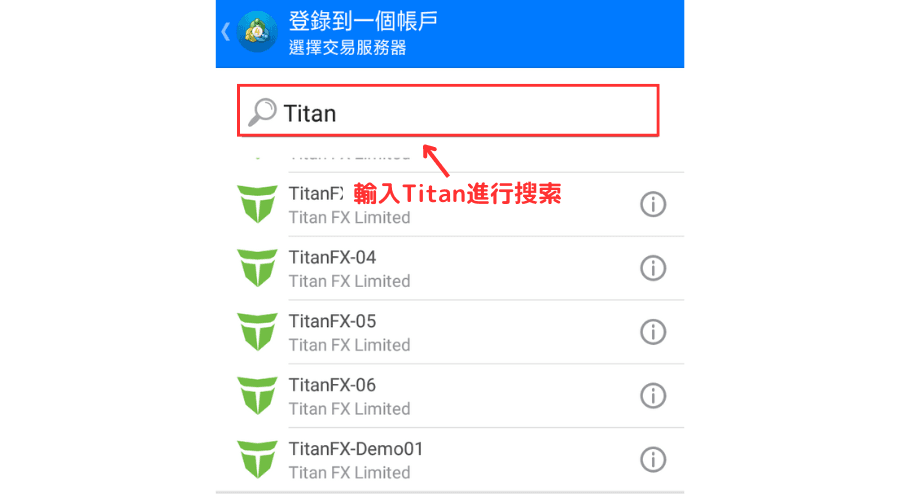 在「寻找交易时」的空栏中输入「Titan」进行搜索。