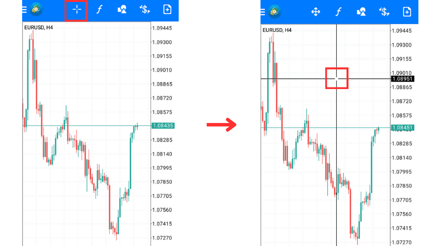 切换十字线模式时,只需要点击图表上方的十字图标就可以。