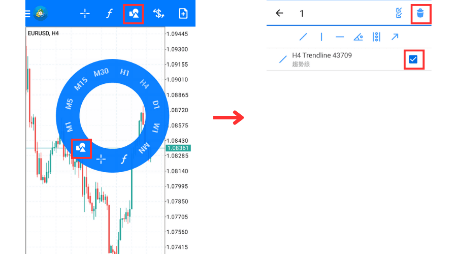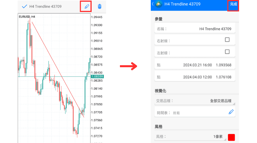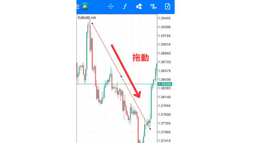 本篇文章将介绍在Android版MT4(MetaTrader 4)图表中设置线条等对象(物件)的方法。
