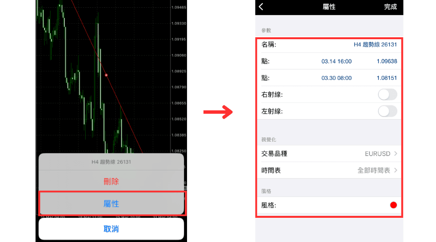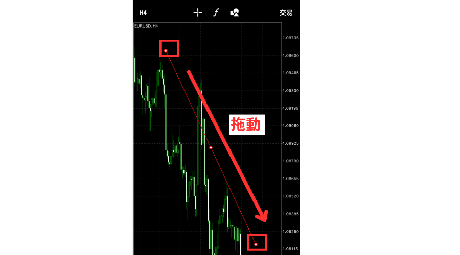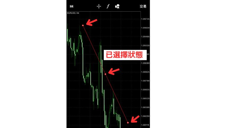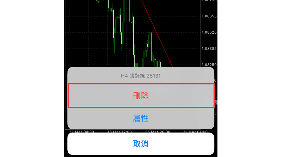 本篇文章将介绍在iOS版(iPhone/iPad)MT4(MetaTrader 4)图表中设置线条等物件的方法。