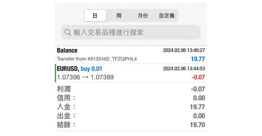 「历史」界面可以确认交易历史资料。