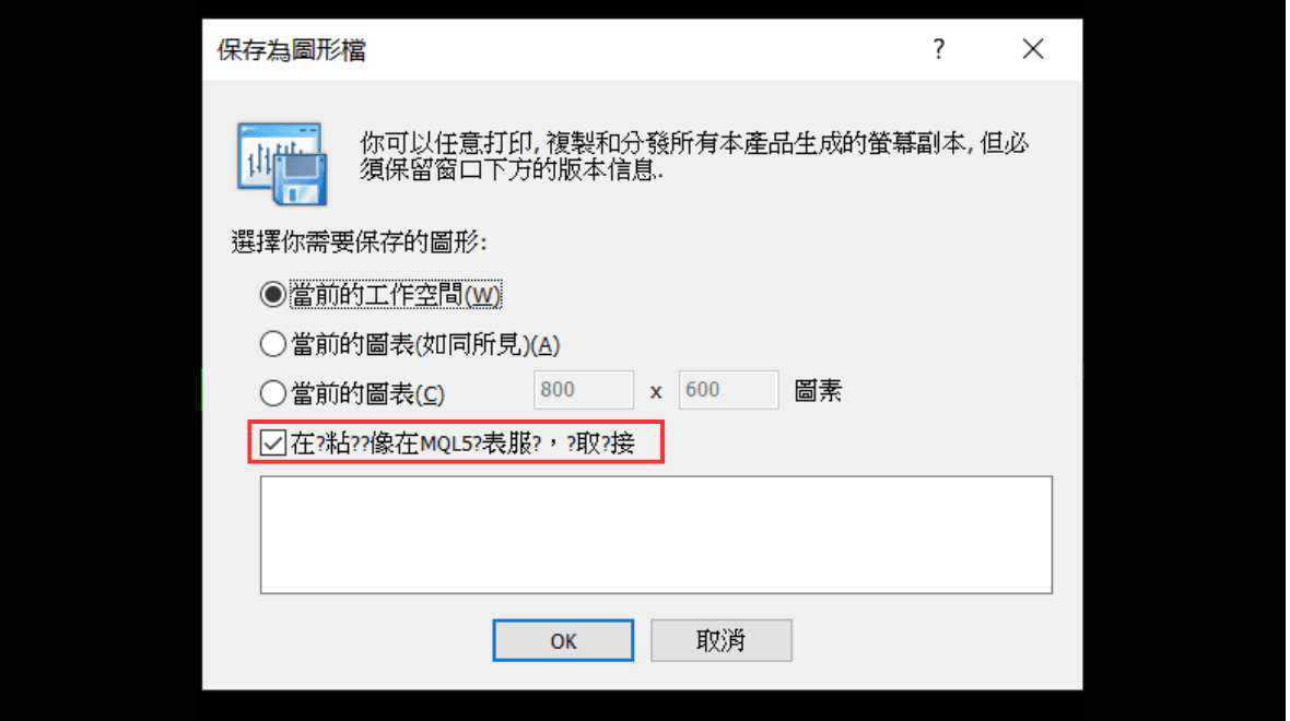 当前的图表(如图所见):储存目前图表的可见部分的图像。