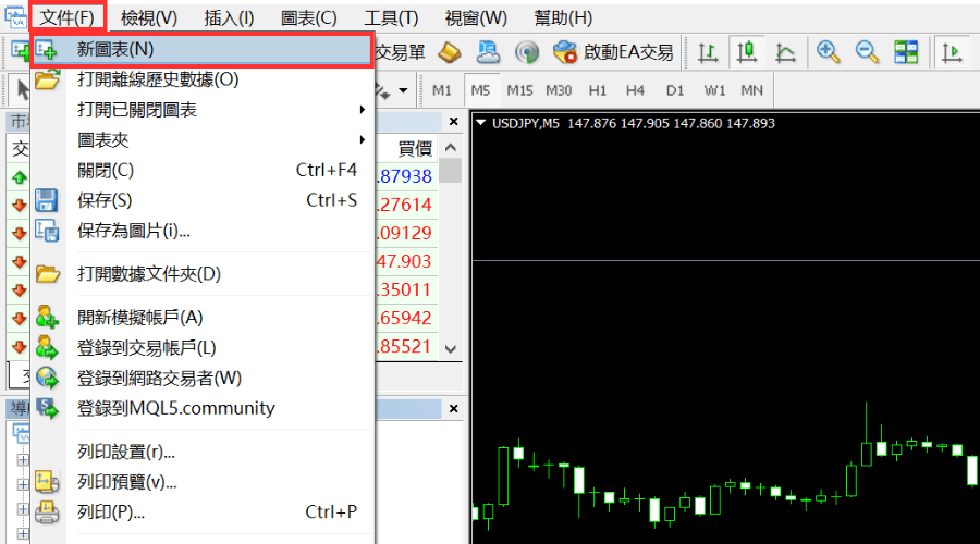 本篇文章将介绍在Windows版MT4(MetaTrade 4)中打开新的图表、以及关闭图表、重开F图表的操作方法。