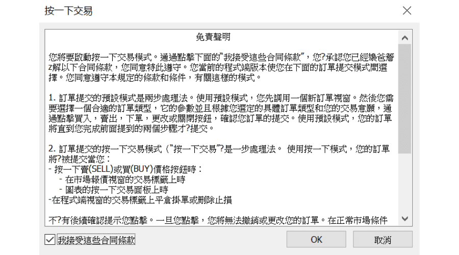 本篇文章将介绍在Windows版MT4(MetaTrade 4)中使用一键交易(按一下交易)的方法。