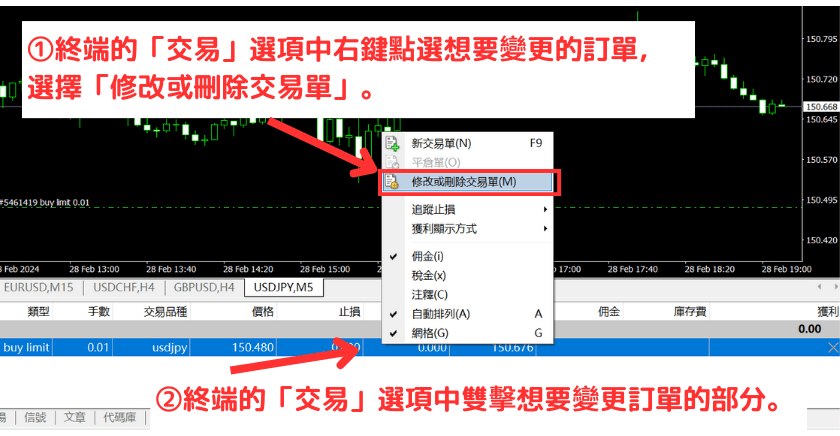 本文详细介绍如何在Windows版MT4中修改或取消限价挂单/止损挂单的方法。