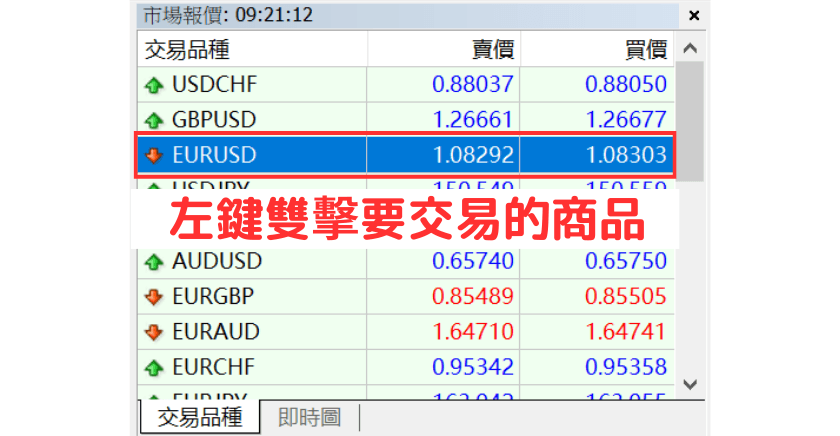 方法5:在「市场报价」-「交易品种」栏左键双击要交易的商品。