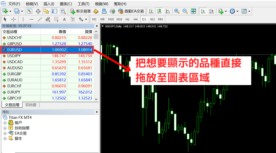 本篇文章将介绍在Windows版MT4(MetaTrade 4)中更改图表的品种的方法。