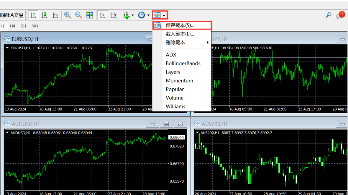 在 MT4 的图表中,您可以将一个图表的颜色、指标等设定保存为「范本图表」,并应用于其他图表。本文将介绍在Windows版MT4(MetaTrade 4)中如何使用这些范本图表(模板图表)的方法。