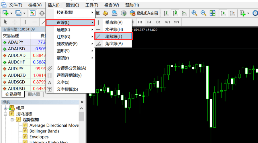 本篇文章将介绍在Windows版MT4(MetaTrade 4)中绘制趋势线的方法。