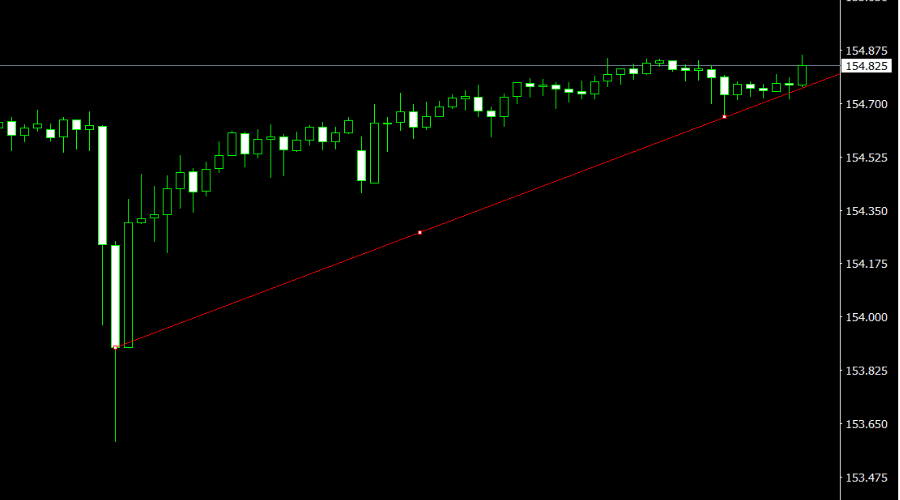 首先点击工具栏中的趋势线图标,然后在图表中移动光标时可以确认光标已切换为绘制模式。