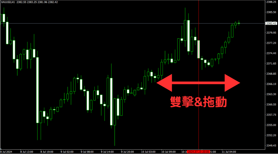 双击已绘制的垂直线,选中后可以通过拖放来移动垂直线。