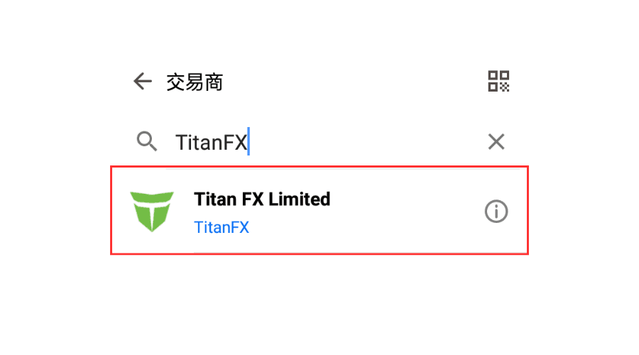 在「寻找交易商」的空栏中输入「TitanFX」进行搜索,然后点击「Titan FX Limited」。