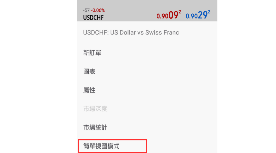在Android版MT5中的行情界面有简单模式与高级模式。