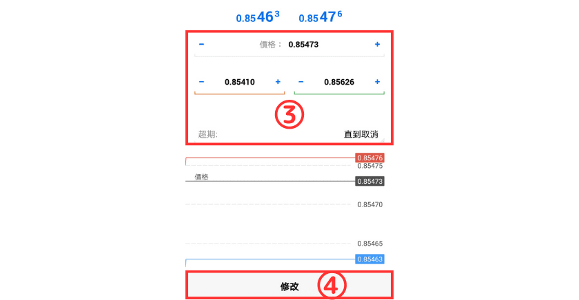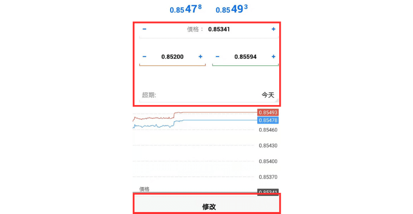 在MT5(MetaTrade 5)中,可以对限价挂单/止损挂单中的价格、有效期限等项目进行修改。 也可以直接取消限价挂单/止损挂单。