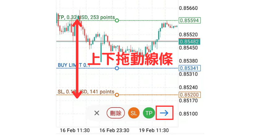 ②拖动价格线条。