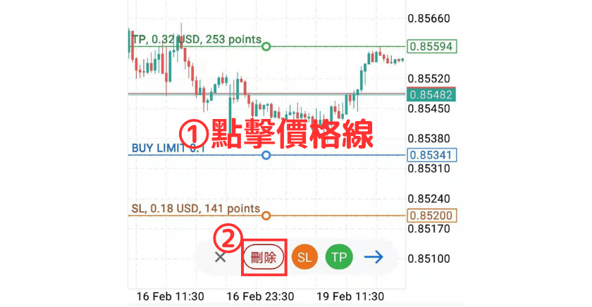 ①点击图表上价格线。
