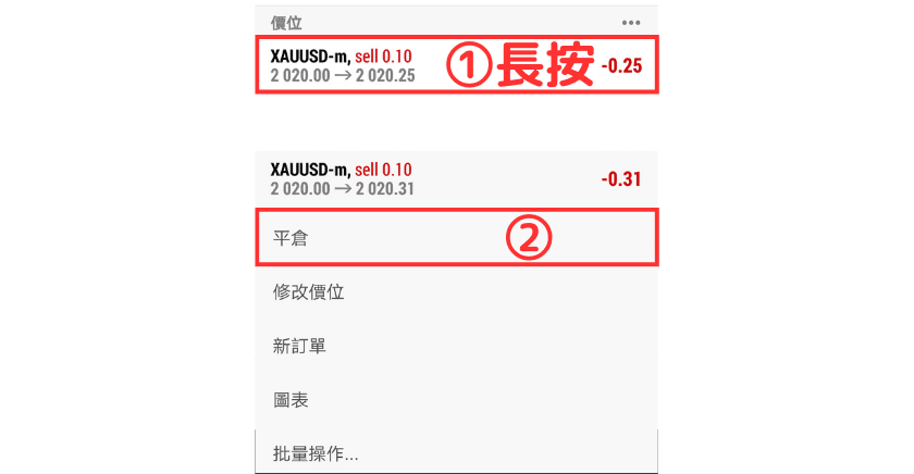 Android版MT5(MetaTrade 5)的平仓(结算订单)方法有多种。 本文介绍在Android版MT5中对持仓仓位的快速平仓和部分平仓等方法。