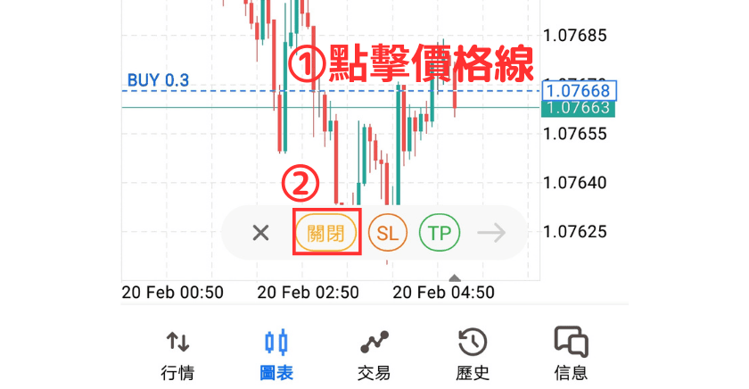 ③点击「盈亏〇〇时平仓」按钮即可完成平仓。
