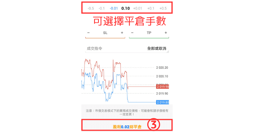 在此也可以设定想要平仓的手数,进行部分平仓操作。