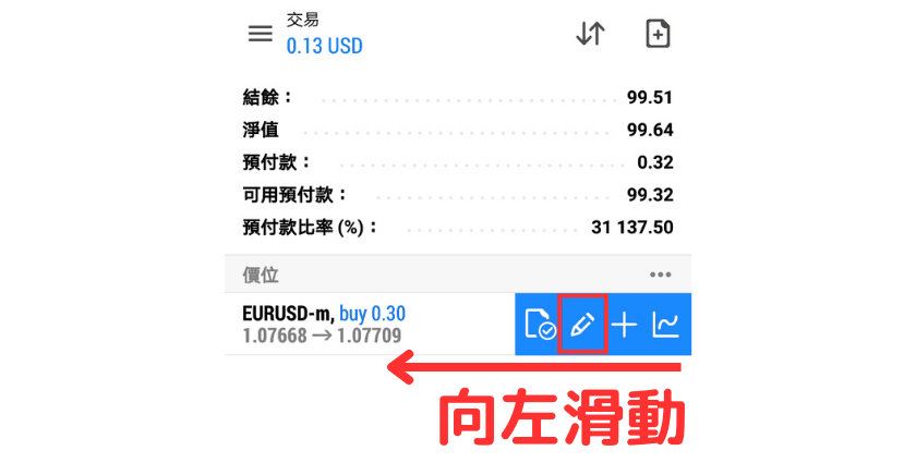 ①在「交易」界面上长按想要修改止损和止盈价格的仓位。