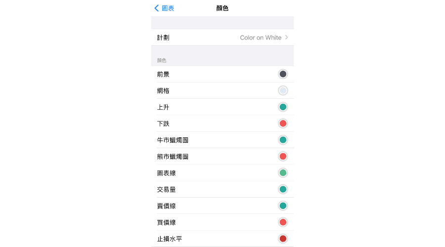 本篇文章将介绍在iOS版(iPhone/iPad)MT5(MetaTrader 5)图表的颜色设置方法。