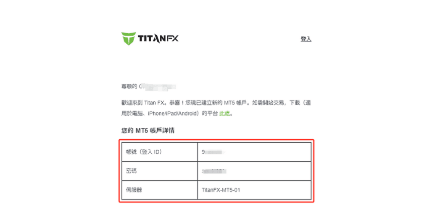 MT5的登录信息可从注册账户时的邮件内查看。