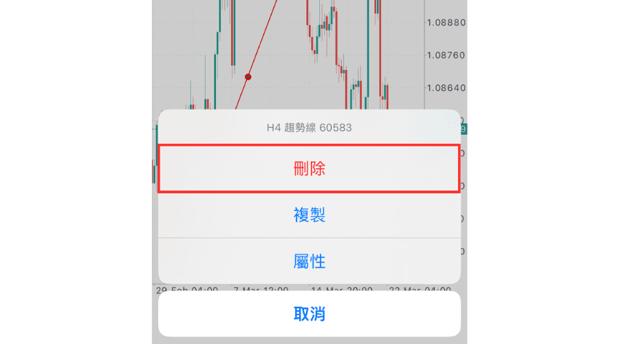 本篇文章将介绍在iOS版(iPhone/iPad)MT5(MetaTrader 5)图表中设置线条等物件的方法。