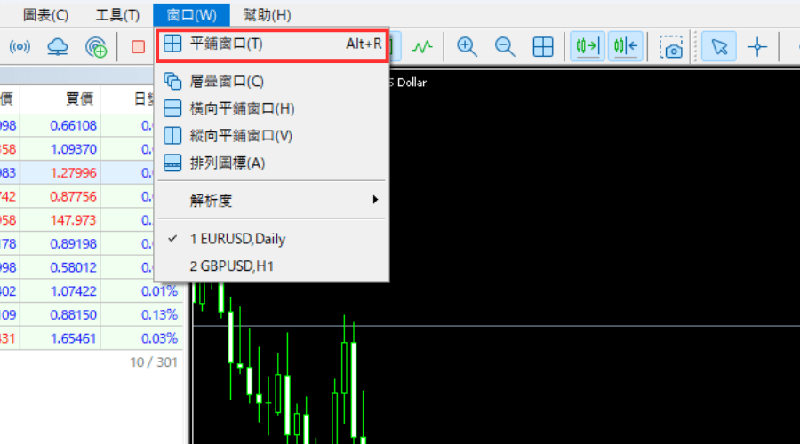 本篇文章将介绍在Windows版MT5(MetaTrade 5)中排列图表的方法。