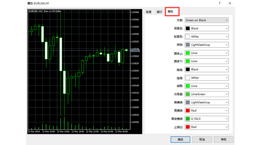 本篇文章将介绍在Windows版MT5(MetaTrade 5)中设置图表颜色的方法。