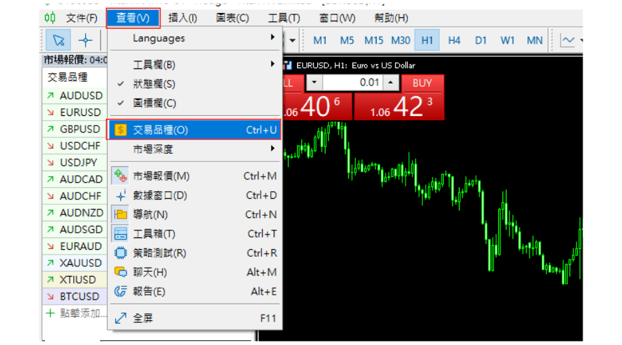 点击MT5「查看」选项中的「交易品种」。
