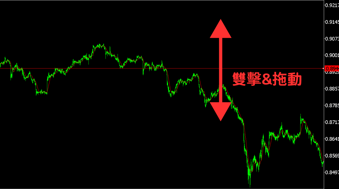 双击已绘制的水平线,并在选取状态下进行拖曳,即可移动水平线的位置。