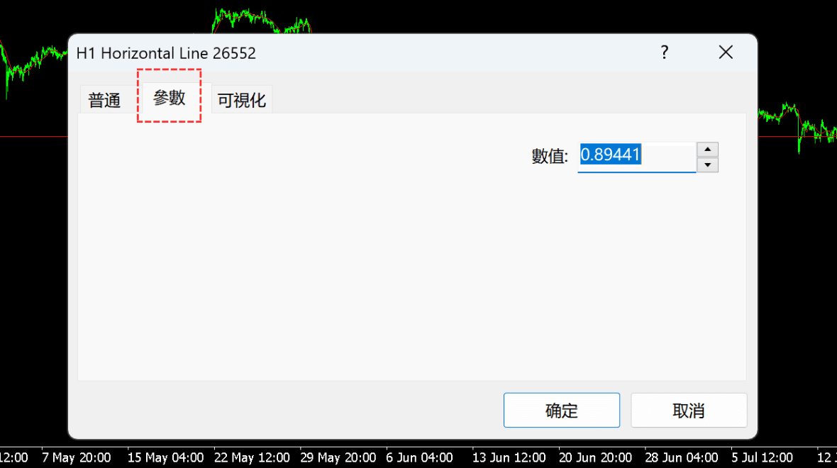 在「参数」页签中,您可以用价格来设定水平线的位置。