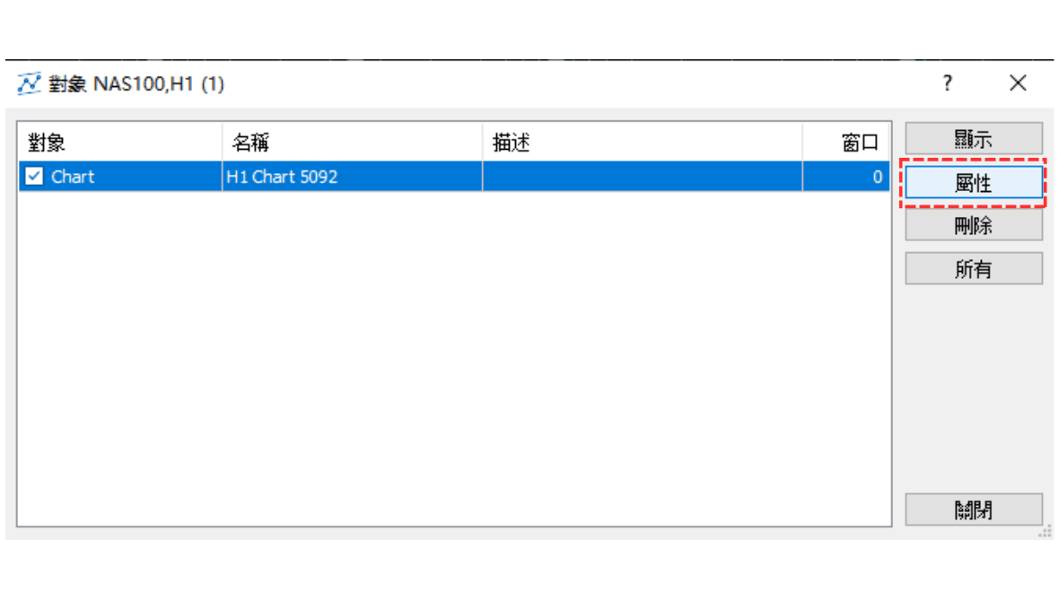 从显示的列表中选择相关的「图表」,然后点击「属性」。