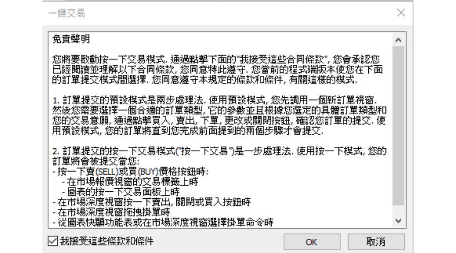 它允许交易者透过点击一个按钮执行完整的交易流程,包括选择交易品种、输入交易量和执行交易订单等步骤。