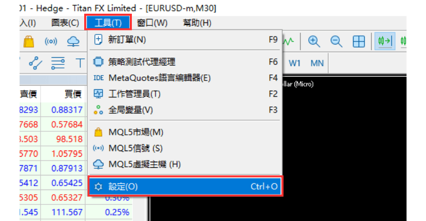 一键交易可以在「工具」-「设定」中的「交易」选项中设定。
