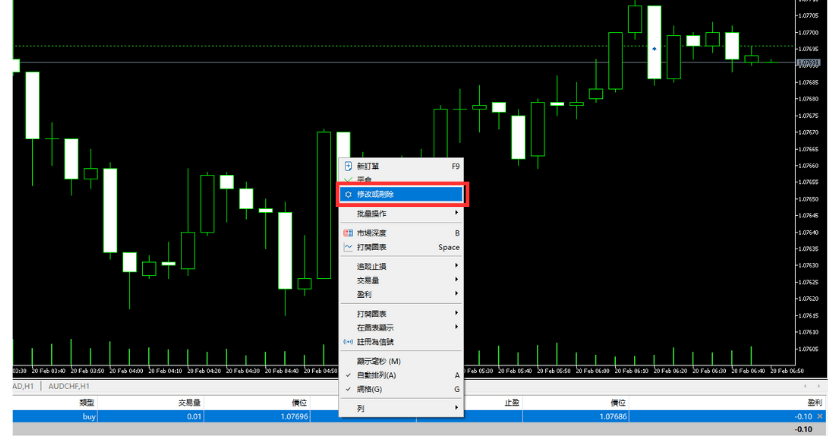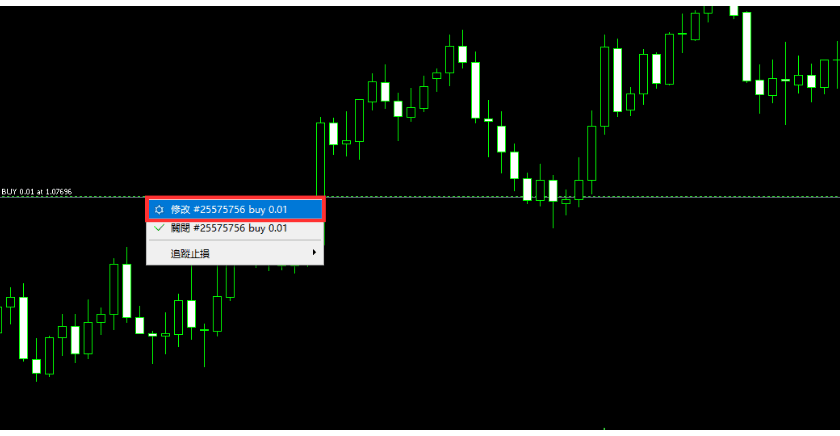 在工具箱的「交易」选项中右键点选想要变更的仓位,选择「修改或删除」即可显示。