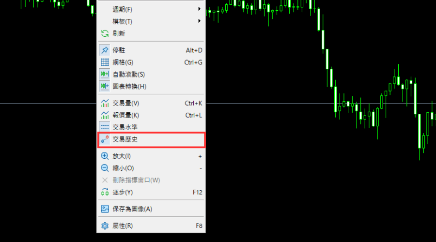 切换方法是在图表中点击右键,然后点击选单中的「交易历史」就可以切换为显示或关闭。