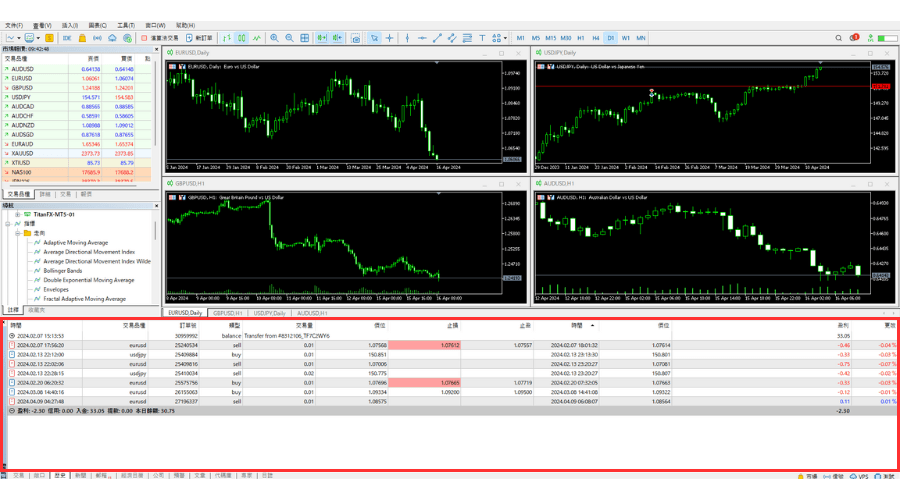 本篇文章将介绍在Windows版MT5(MetaTrade 5)中确认交易历史的方法。 在MT5的工具箱「历史」标签中可以查看已结算的交易、入金、出金等记录。