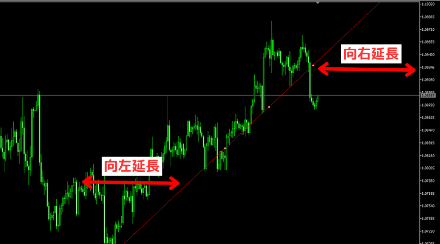 勾选「右射」的话就可以把终点向右延伸,勾选「左射」的话就可以把起点向左延伸。