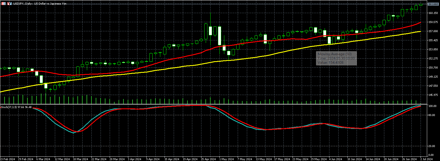 周一交易中,美元兑日圆再上涨 0.34% 至 161.72 日圆,创下 1986 年以来新高,累计美元兑日圆今年已上涨超过 12%。