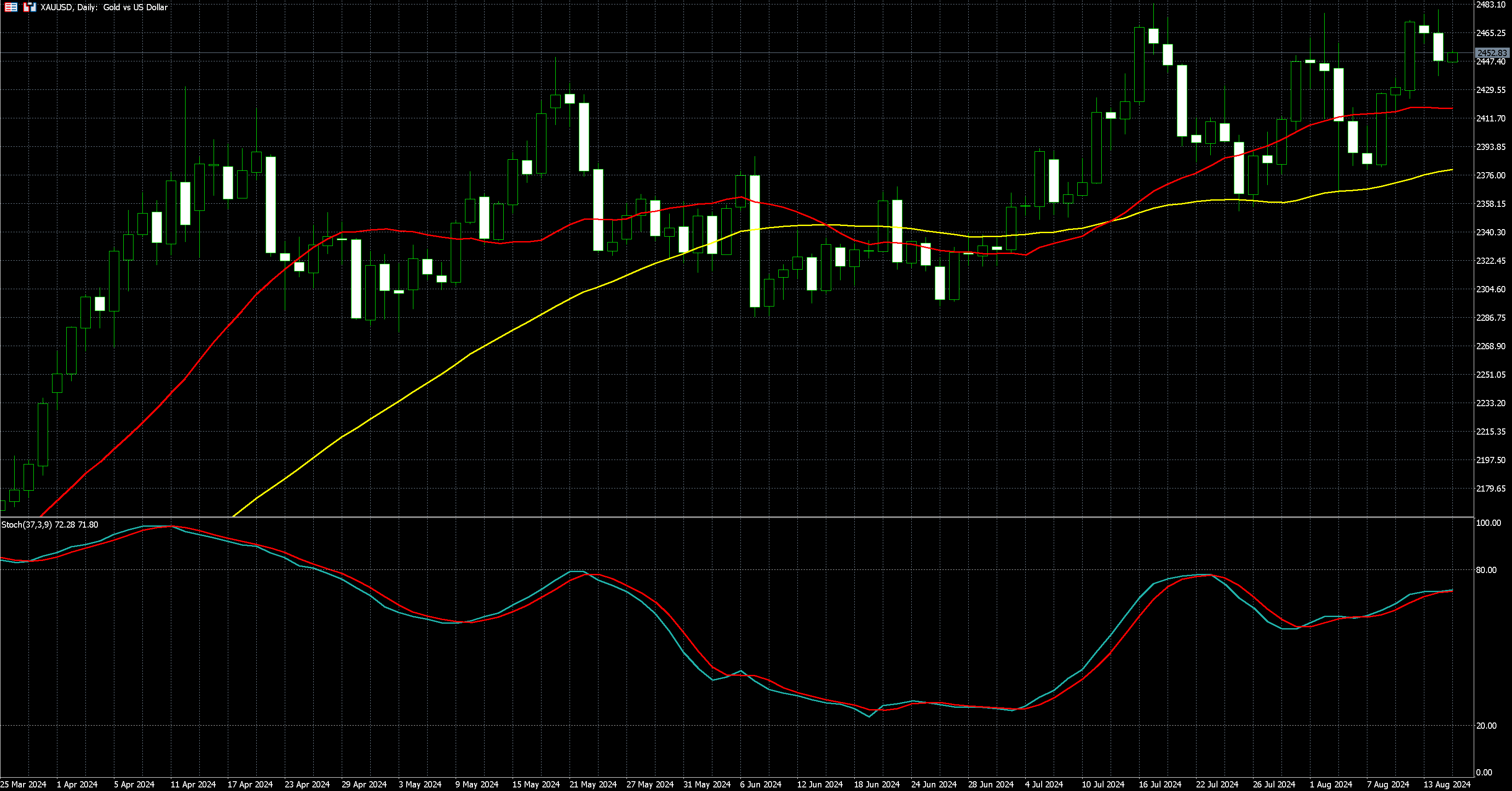 由于避险需求坚挺和 Fed 降息预期,黄金现货价格于 7 月 17 日触及 2483.60 美元的历史新高,今年迄今已上涨 19%。
