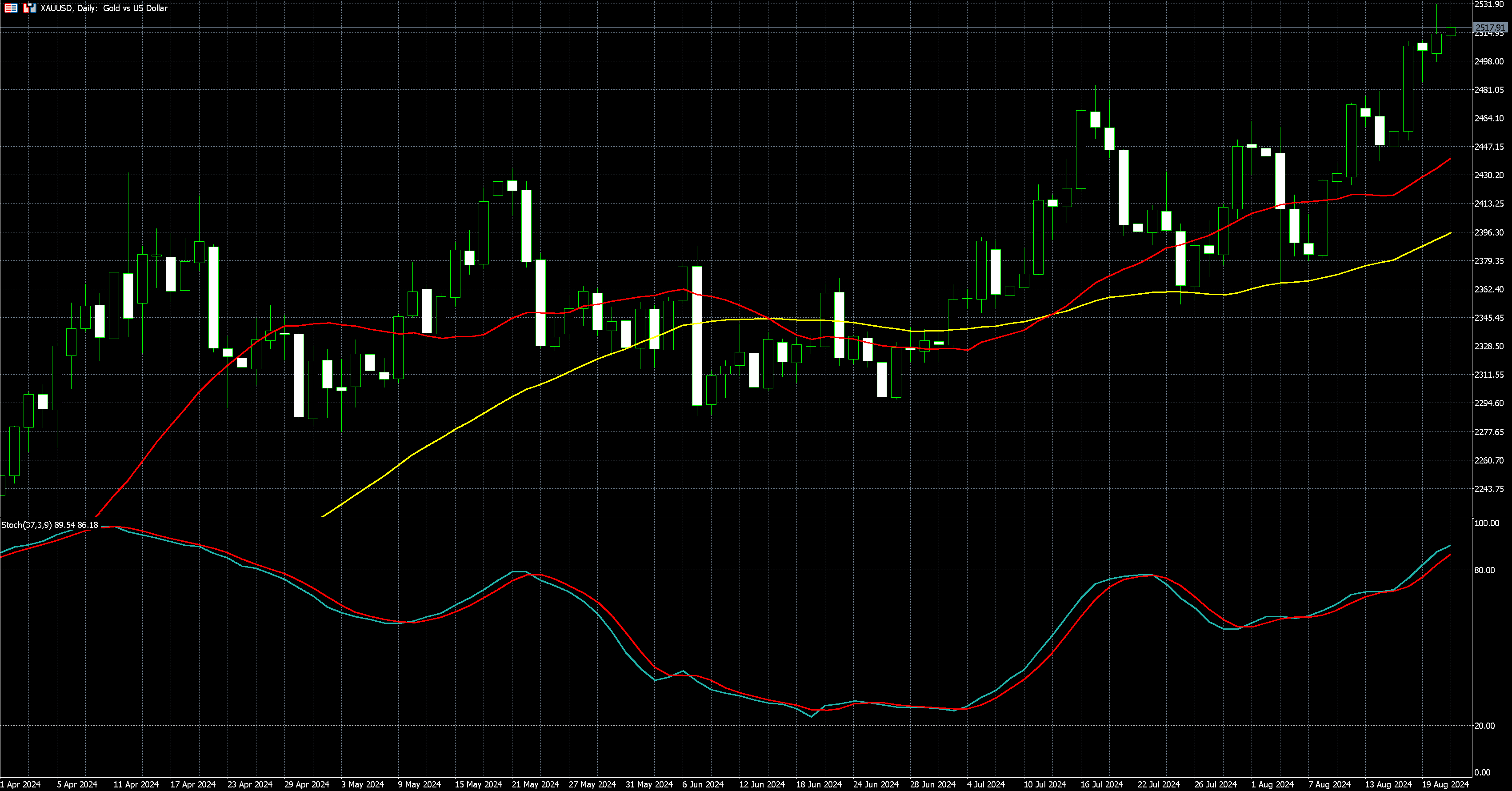 受美元疲软以及投资者对联准会 (Fed) 9 月降息的信心增强所推动,黄金价格周二 (20 日) 延续创纪录的涨势,坚守在 2500 美元关键水准上方。