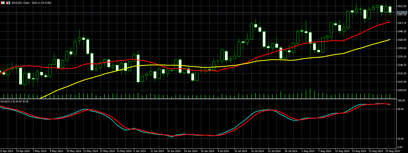 黄金价格在 8 月 20 日创下历史高点 2531.65 美元后,本月上涨 2%。