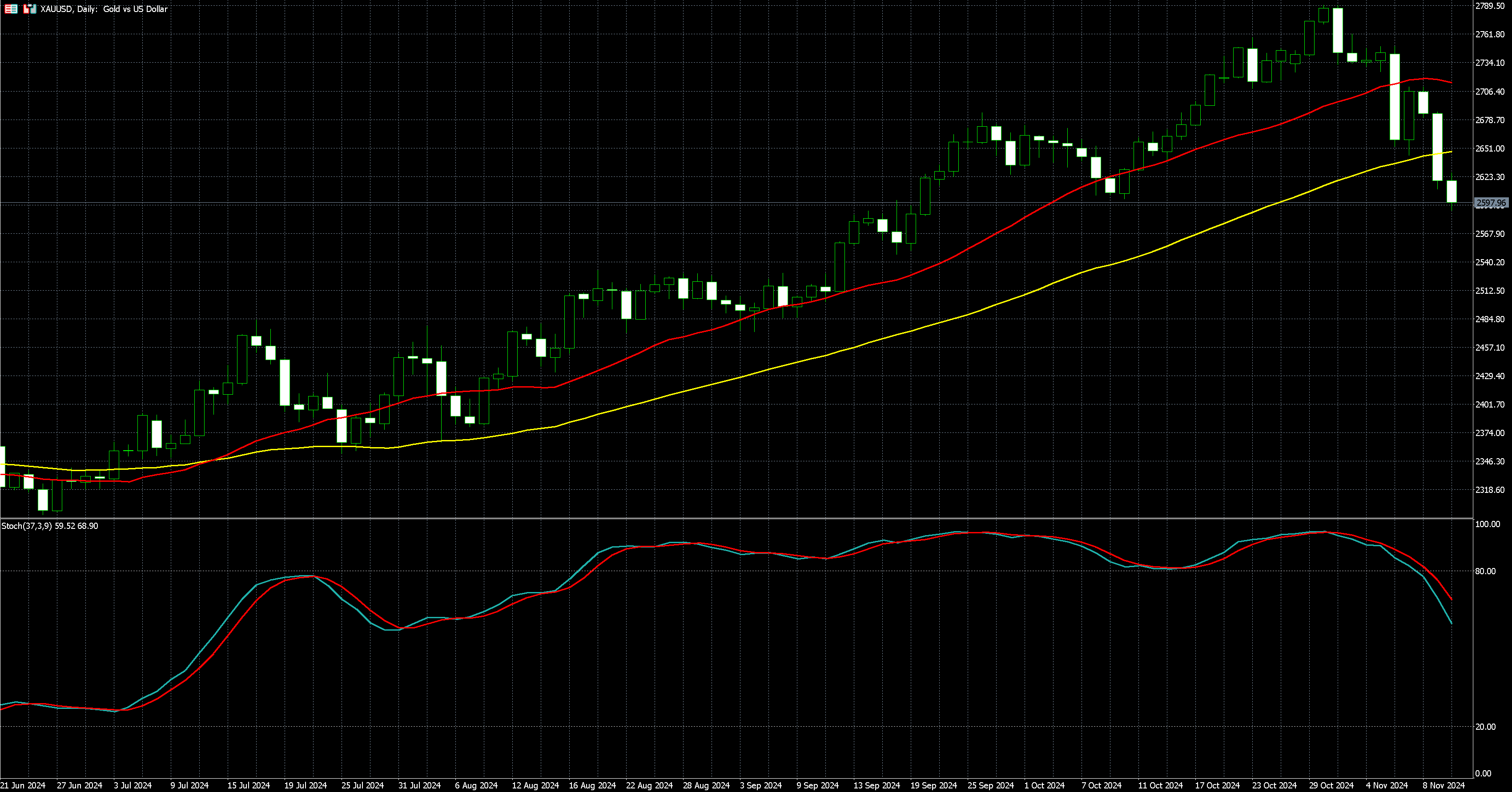 黄金价格周二 (12 日) 跌至近两个月低点,系因美元走强、川普当选后市场洋溢对经济成长的乐观情绪,以及美国总统大选后更广泛的市场转向。