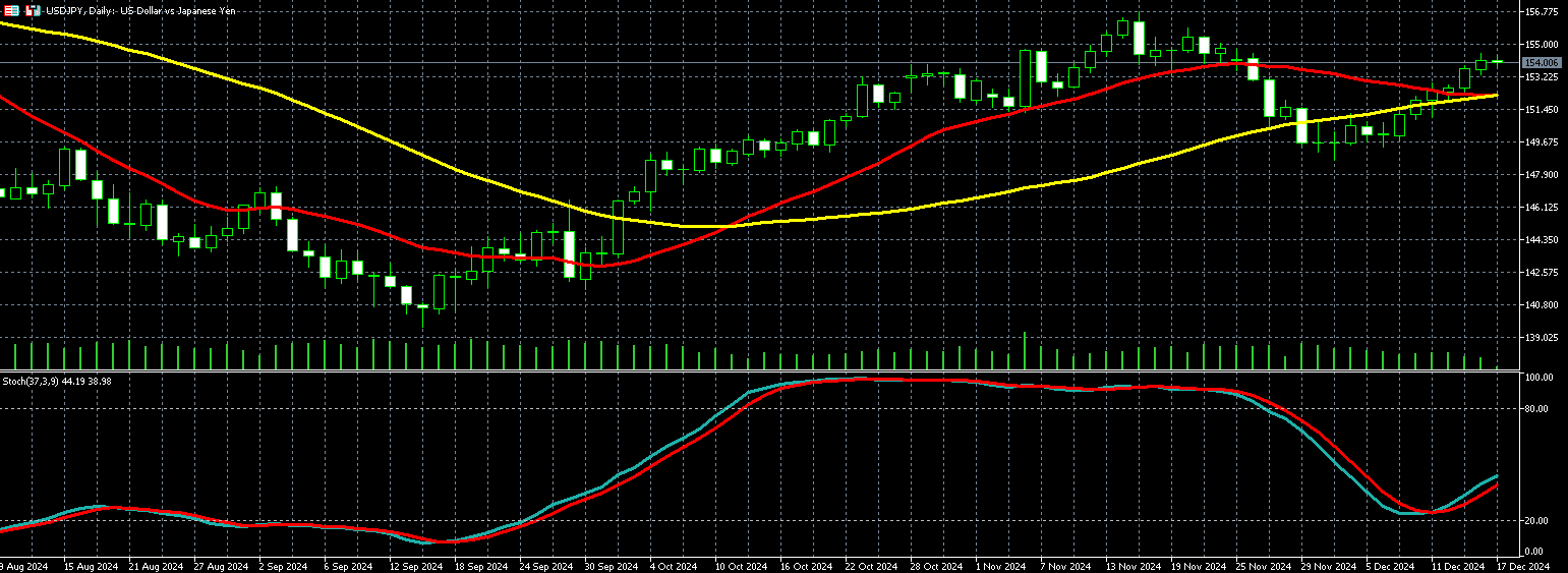 周一美元兑日圆上涨 0.27%,报 1 美元兑 154.09 日圆,盘中一度触及 154.479,为 11 月 26 日以来新高。